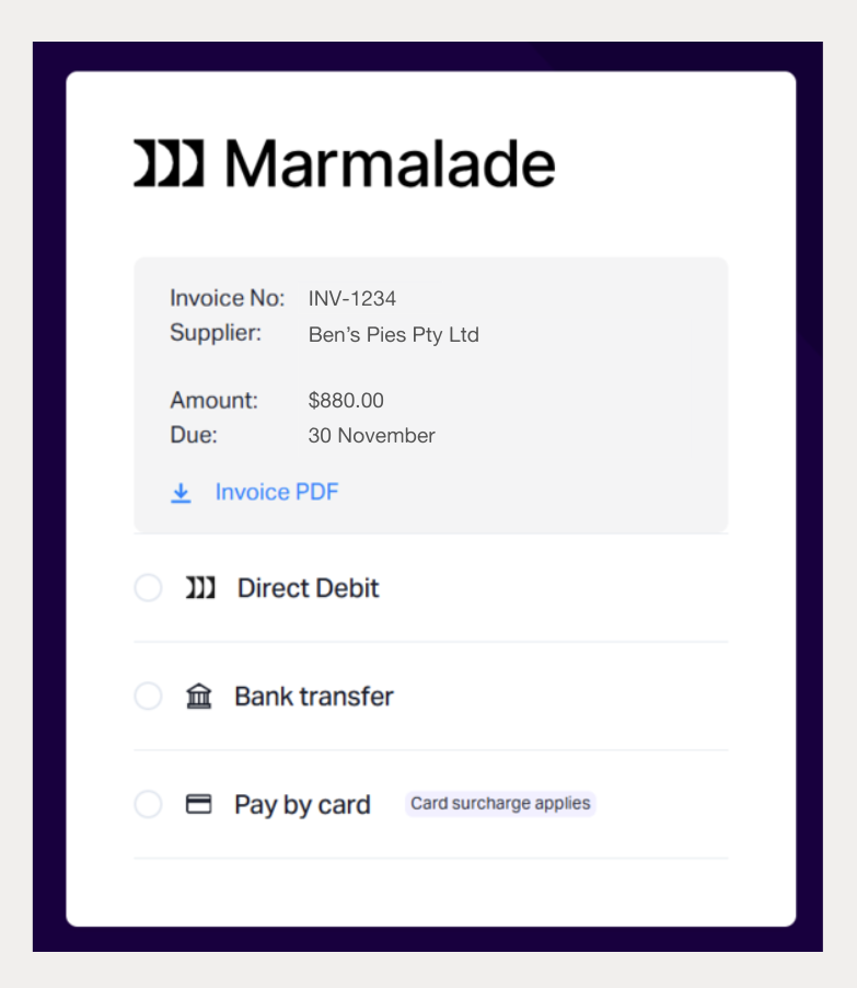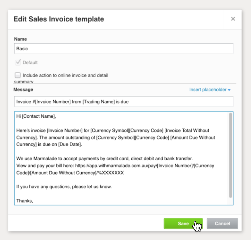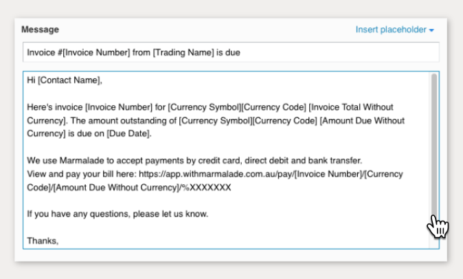 To make it quick and easy for your customers to pay, every Xero invoice email should include a link to your Marmalade payment page.