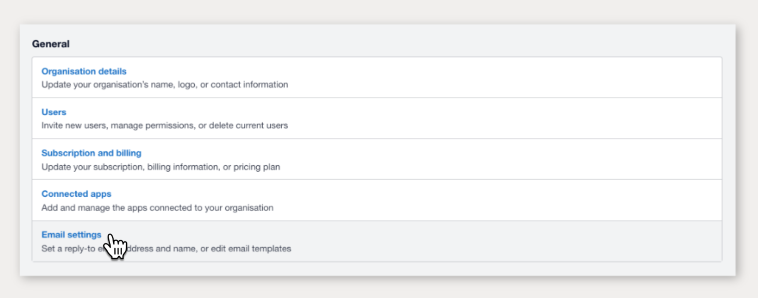 Under General, select Email Settings.
