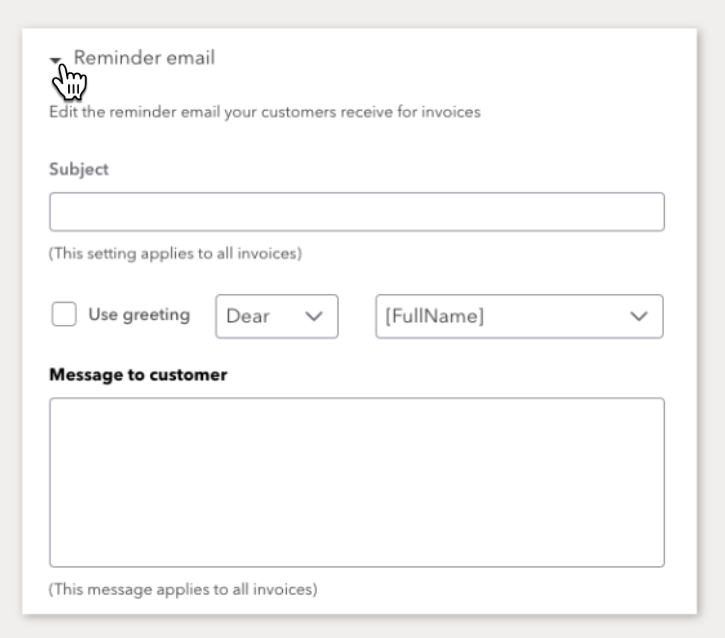Select the Reminder Email drop-down, and remove all pre-populated text. Marmalade will deliver reminders on your behalf.